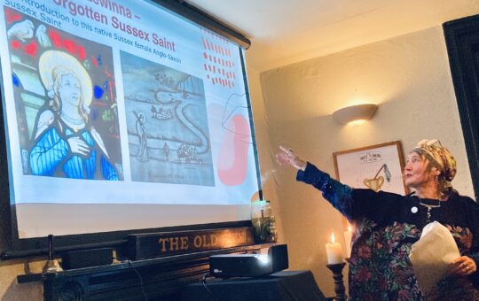 In November we had a last minute talk from myself on postal pranks and mischief; Vera Zakharov explored the history, geography and ecology of the river Ouse and Serena Mitchell shared the connected stories of Sussex’s only female saint, our only Sheela-na-gig and the psychic Nell St Joghn Montague.